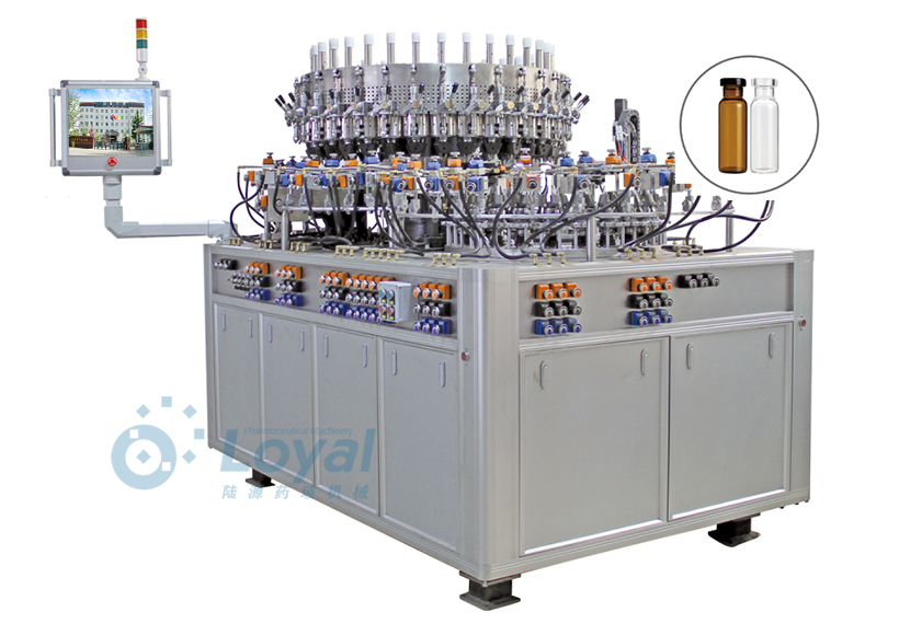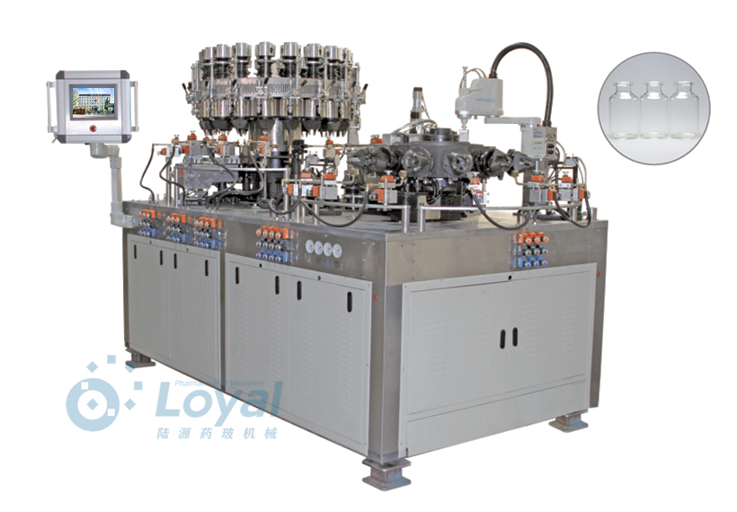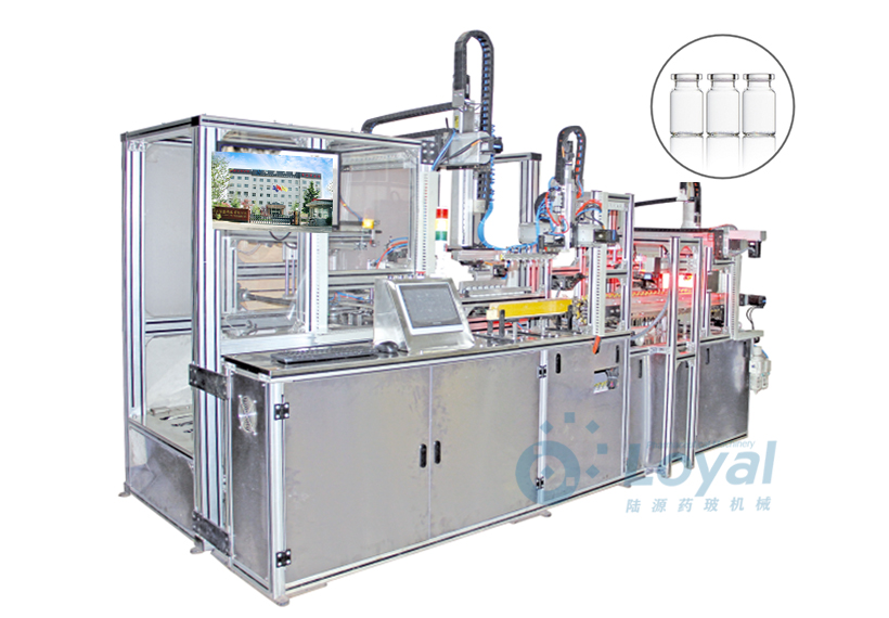 西林瓶生產(chǎn)線包括:自動上管、自動成型、經(jīng)機(jī)械手轉(zhuǎn)換至前端檢測線(也叫生產(chǎn)管控)、檢測線檢測的項目:1、瓶口內(nèi)外徑 2、瓶身長短 3、瓶身外徑 4、瓶口邊厚 5、瓶底內(nèi)凹尺寸檢測;經(jīng)檢測后的合格品再用機(jī)械手夾盤轉(zhuǎn)換至退火爐網(wǎng)帶上,經(jīng)高溫減除應(yīng)力后再降溫,通過氣動吸盤將回火后的小瓶轉(zhuǎn)換至后端檢測線,后端檢測(也是重檢也叫終檢),經(jīng)后端拍照檢測項目